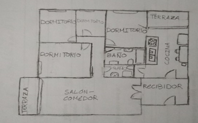 Esplica a grandes rasgos lo que se quiere representar. no tiene medidas exactas.