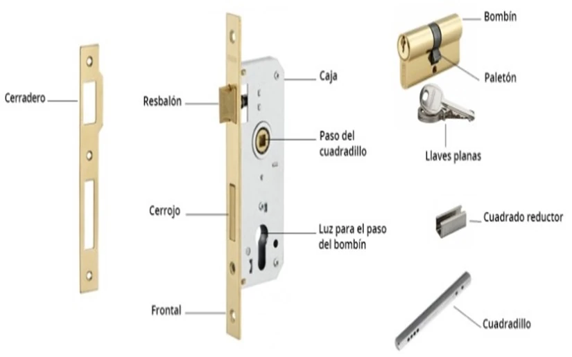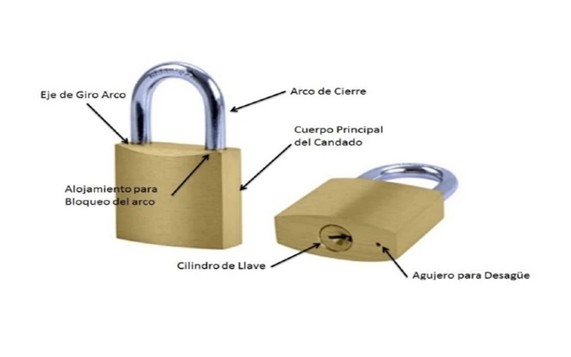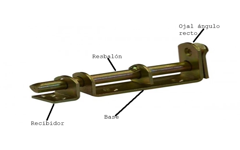 El Picaporte es un mecanismo que permite abrir y cerrar la puerta. Esta compuesto de una base, el resbalón y recibidor, tanto la base como el recibidor tienen un ojal de angulo recto para asegurar el candado.